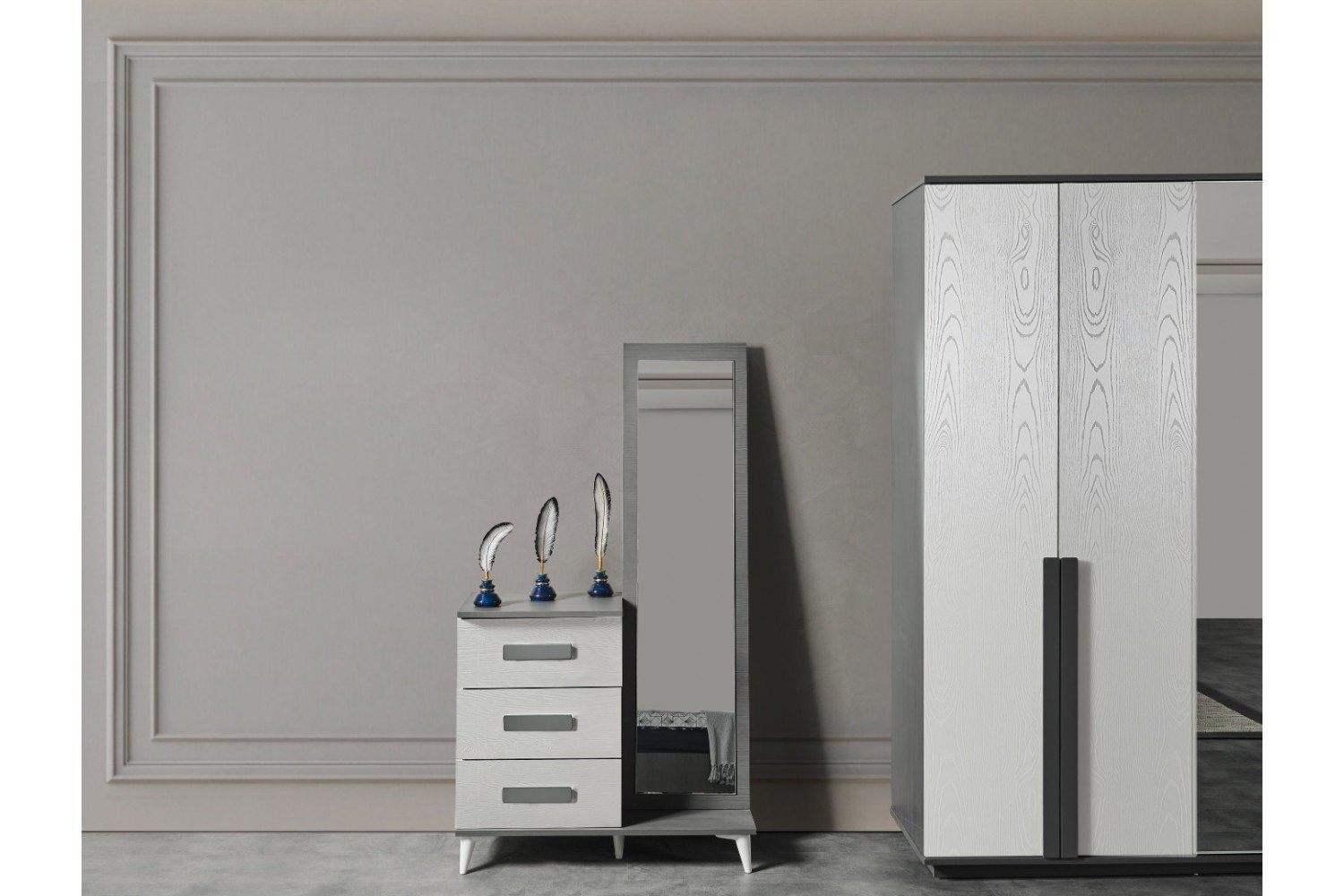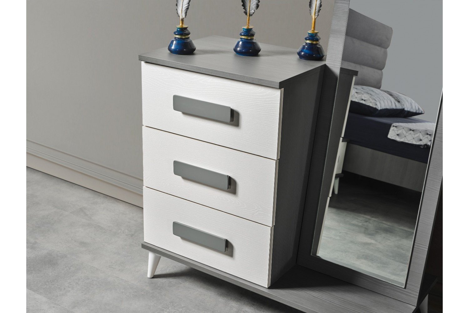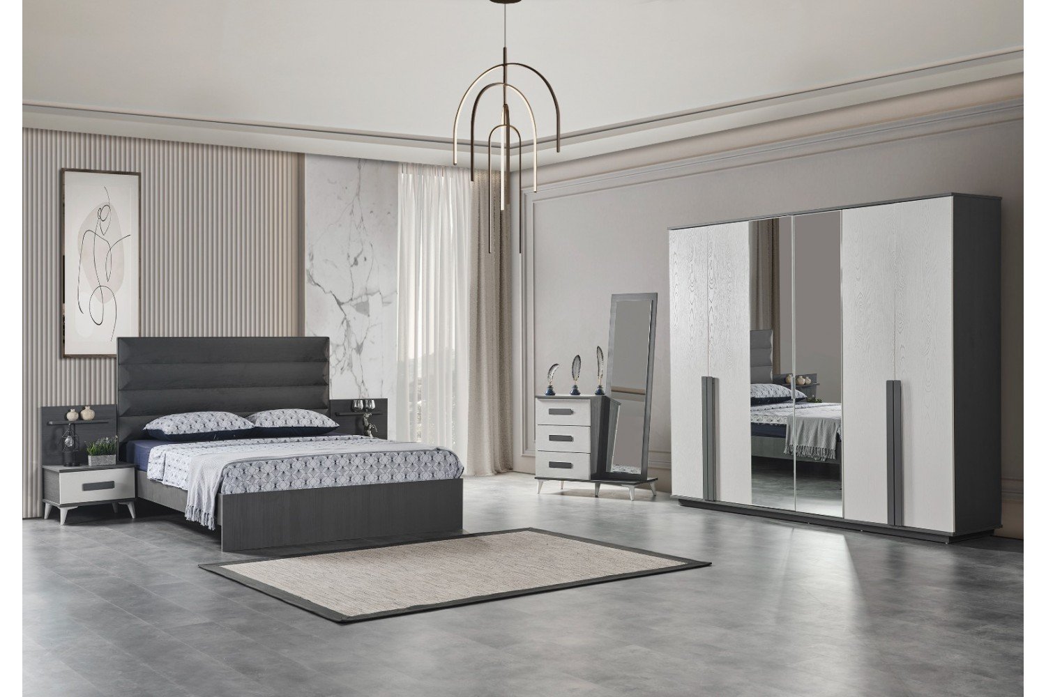 Takım İçeriği | 1 Adet 6 kapaklı Gardırop, 1 Adet Karyola ve Başlığı, 2 Adet Komodin, 1 Adet Şifonyer ve Ayna |