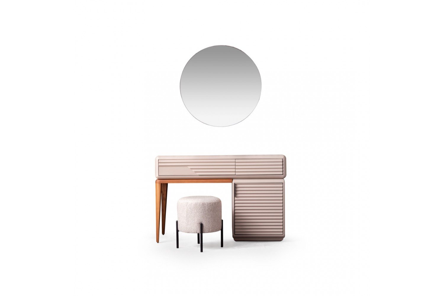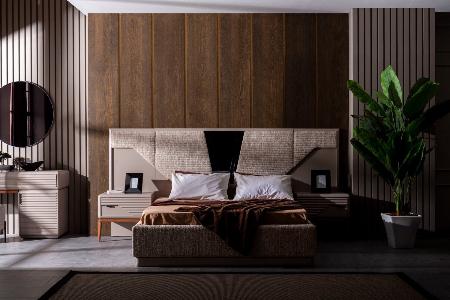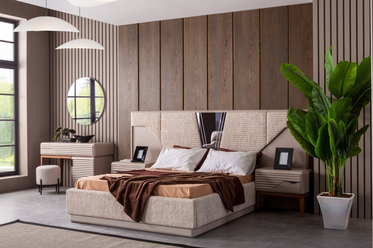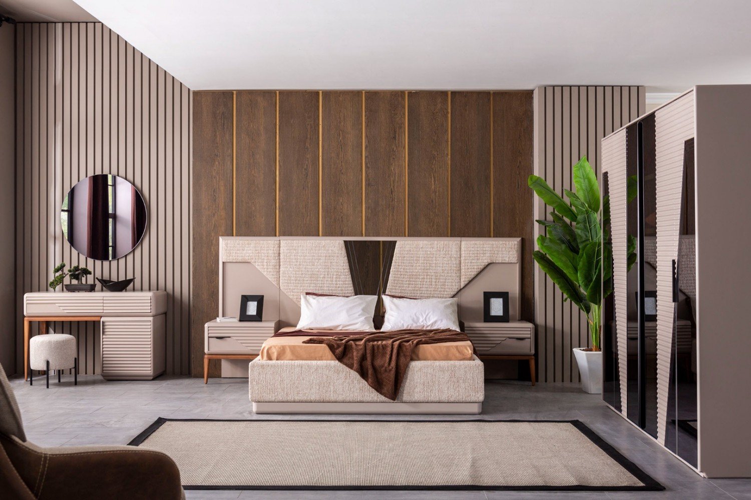Takım İçeriği; 1 adet dolap, 1 adet şifonyer ve aynası, 1 adet karyola ve başlık ve 2 adet komodinden oluşmaktadır.