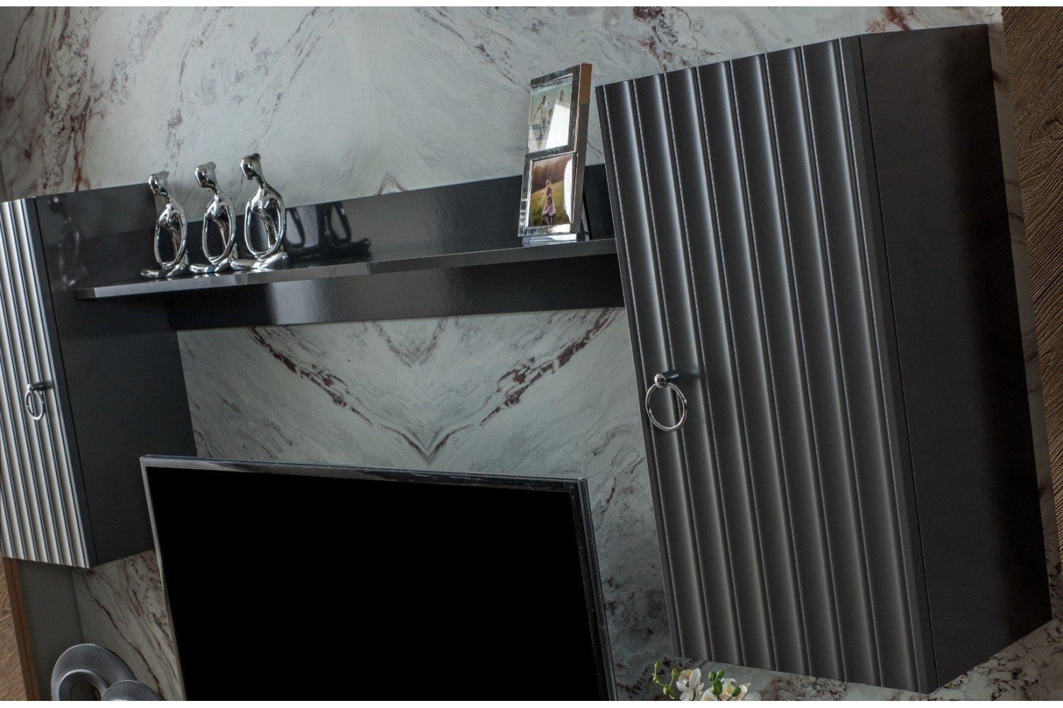 Valor Tv Ünitesi (Alt Blok +Üst Blok (2)+Raf) (Antrasit Gri)